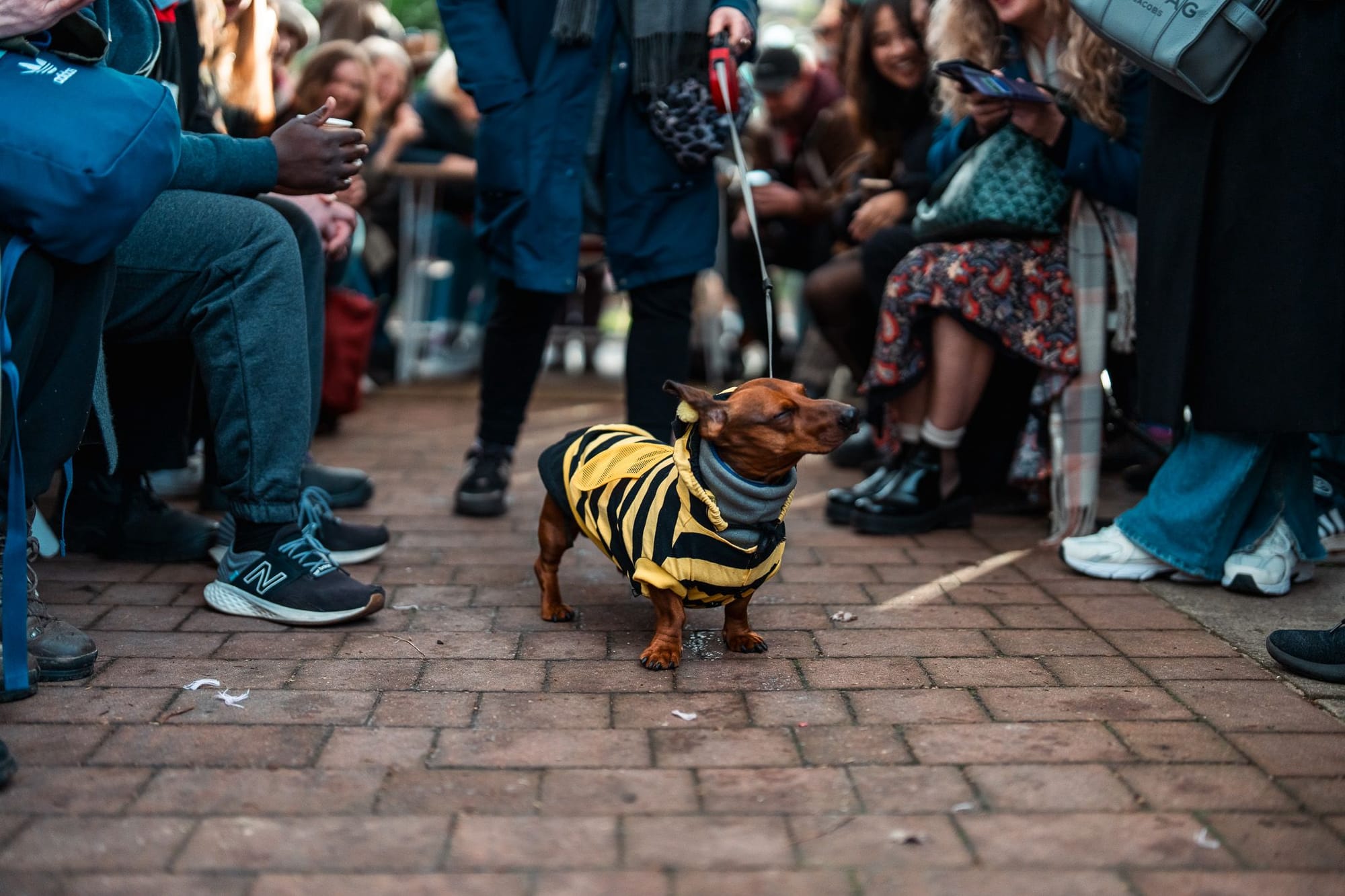 Instead, that honour goes to Perry and her chihuahua, the aptly named “Tiny”, who peeks out from the lining of her puffer jacket. Both look delighted. Undeterred by the dreary weather, a sizeable crowd has turned out for the second annual dog show organised and hosted by the Museum of Homelessness, featuring five different award categories (among them “Floofiest Dog” and “Mellowest Mutt”), food and hot drinks, and a tombola.