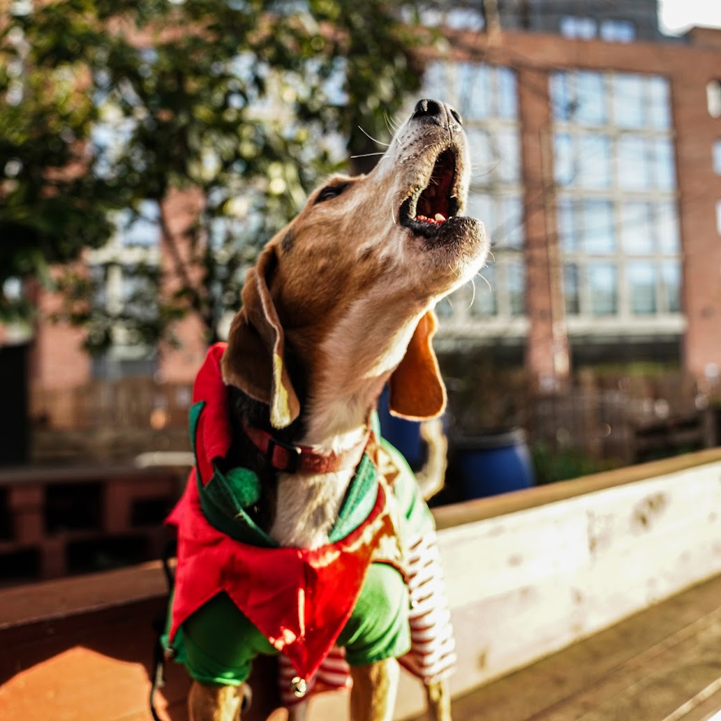 This year’s participating pooches include an array of costumes: an Airedale terrier dressed as a Viking, a beagle as an elf, a dachshund as a bumblebee, a cockapoo as a spider, some kind of fluffy mutt as Santa Claus, and a black lab as a reindeer, who keeps shaking off his antlers. Though the dogs are well behaved, there’s a more chaotic atmosphere than you’d find at Crufts, with competitors often missing their cues, getting distracted, wandering off in the wrong direction, or failing to respond to the challenges presented by rounds like “Waggiest Tail” or “Loudest Bark”.