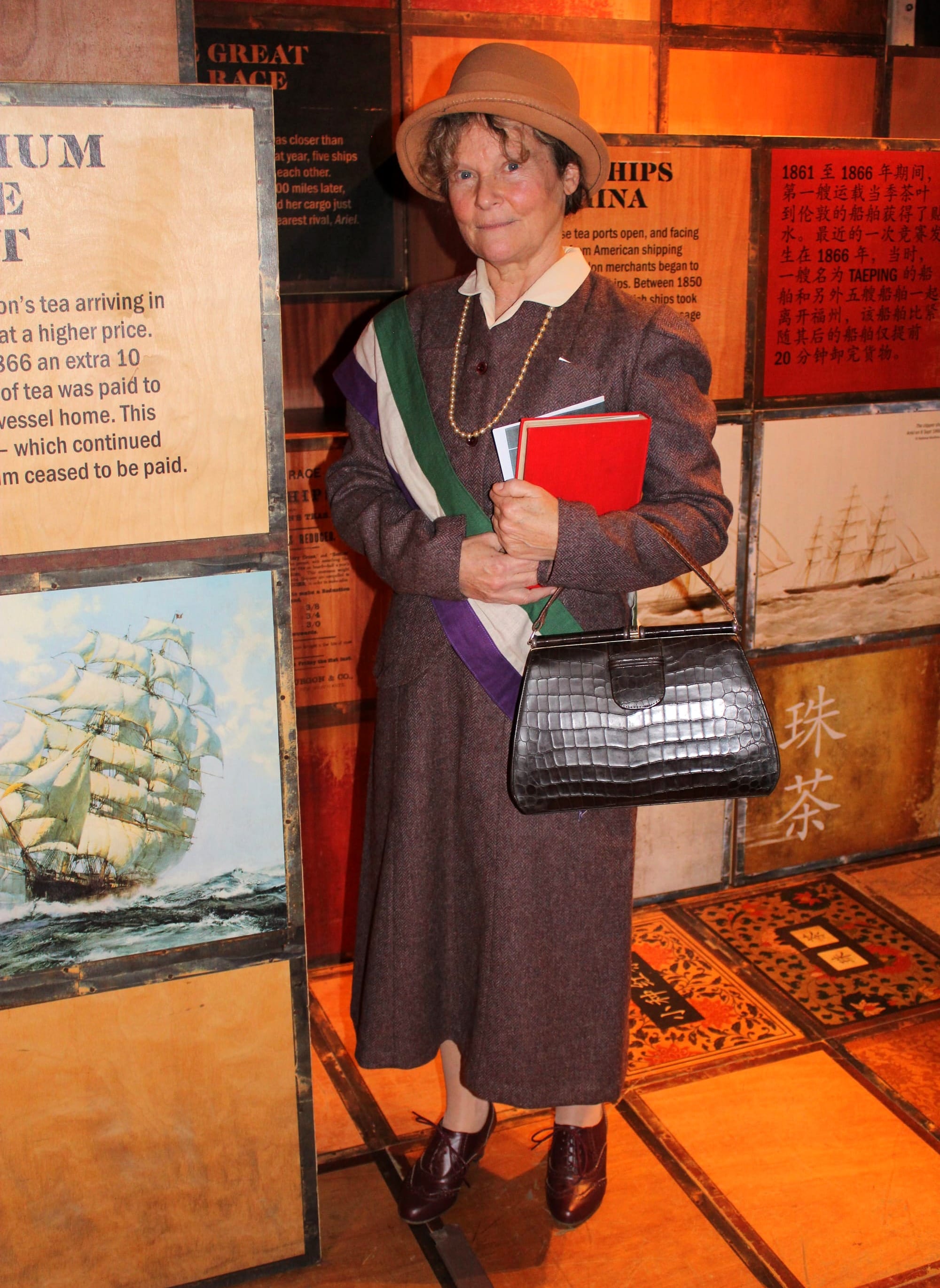 Unlike other historic ships preserved across the UK, the Cutty Sark didn’t fight great battles or carry kings across oceans. She zipped to the Far East and Australia from Britain to collect cargoes of tea and wool for the Empire, but the real magic happened when she was plucked from obscurity and wreckage in Falmouth by Wilfred and Catharine Dowman in the early 1920s, sensitively restored and put to use as a cadet training school. I’m told all this by Katherine, a performer irresistibly attired in a tweed skirt-suit, pearls and the green, white and purple sash of the WSPU. Katherine works with Royal Museums Greenwich and thought the narrative around Cutty Sark’s legacy was rather too masculine, so today she is here to tell the story of Catharine — Courtauld heiress, Suffragist, boat saviour — which she does with a twinkly-eyed conviction that would make Judi Dench proud.