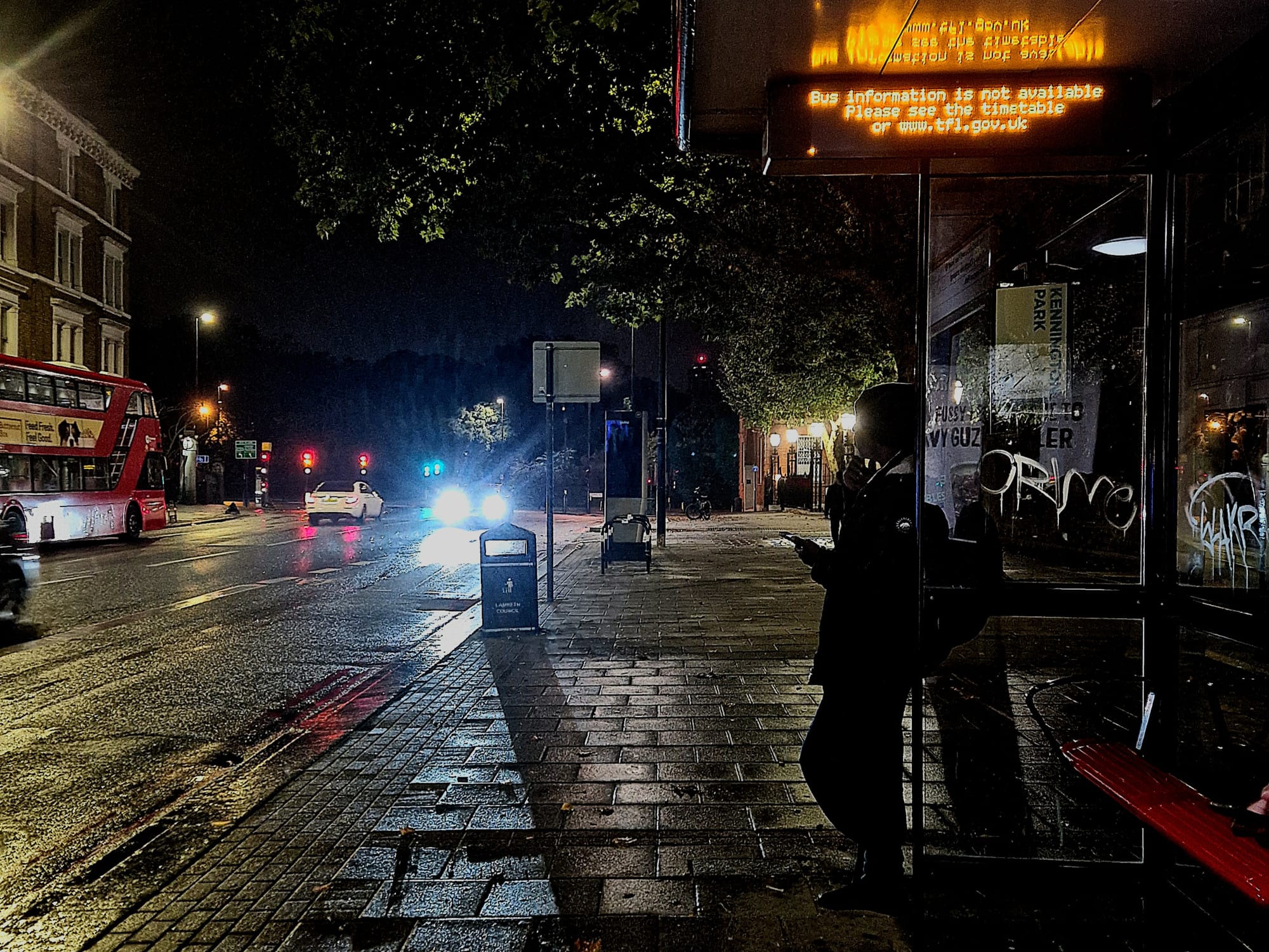 Parveen, a young woman in a fluffy hoodie, and her floppy-haired, unsmiling companion Zoltan disembark the N109 at Lambeth Town Hall, and sit down to wait for their next bus. I'm hopeful that the two of them being together improves the likelihood that she will chat to me, as so far every woman I've approached has refused, I assume looking out for their own safety.