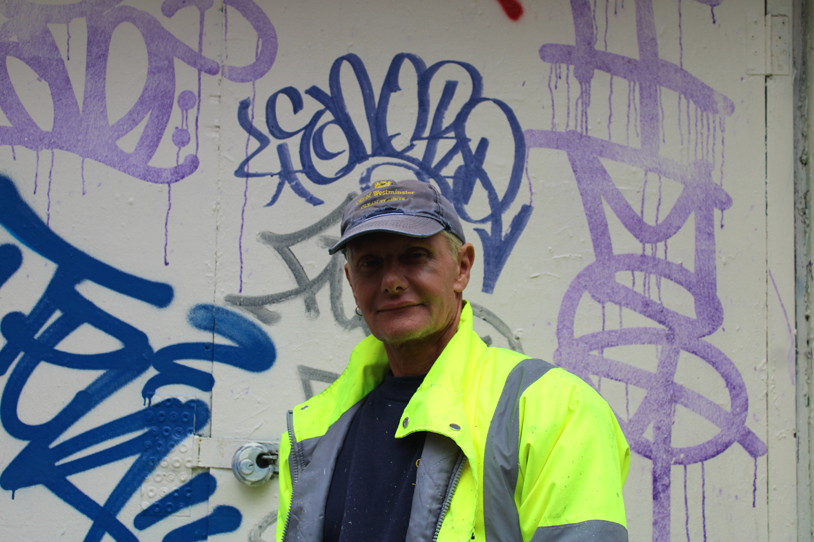 We meet in Soho on a dull and grey December morning, the kind where the sun never seems to rise more than a few feet off the ground. Tanned, with a gold hoop earring and a frayed baseball cap pulled tight over peroxide blonde hair, Steve swiftly spots a problem with the site Westminster council have called him to. “Well obviously I’m not going to use these here”, he says matter of factly, gesturing to a little red bucket filled with chemical solvents.