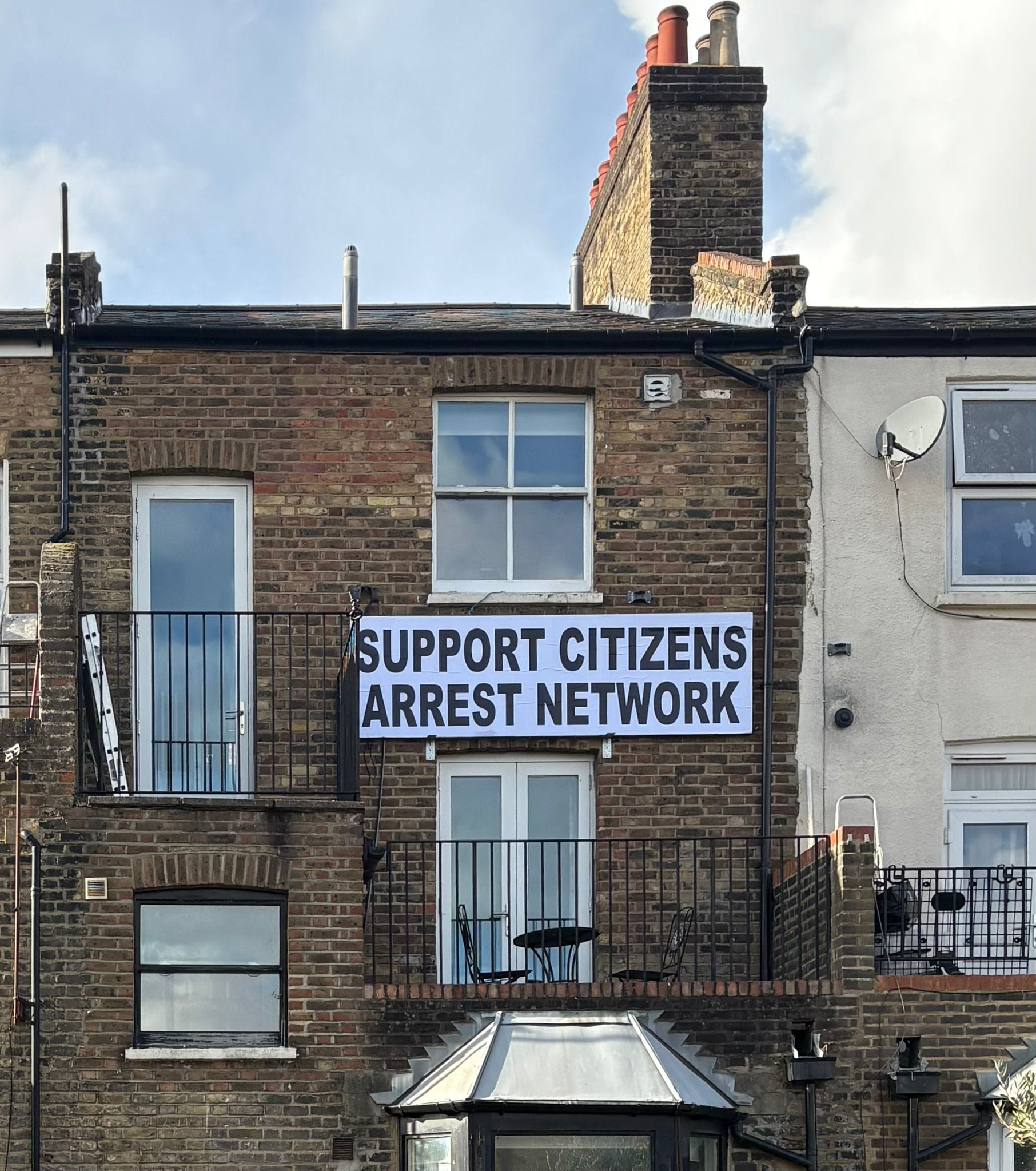 Every few weeks, Nick will emerge onto balcony of his second-floor flat, facing the railway line just north of the station, and hang up a new, hand-painted 3 x 0.9 metre sign. It will always have a phrase painted on it, always nearly a metre high, always in bold, black-on-white sans-serif lettering. When it comes to his messages, Nick has a few rules. They will contain a pithy, usually three- or four-word slogan. They will usually hint at a deep distrust of authority and, to put it politely, the way information is distributed. There will be common themes: war, protest laws, surveillance, the media. Nick’s favourites, he says, are “ones that question the narratives; the acceptance of which, let’s face it, has got us into a terrible state”. Still, they will, he says, be positive in tone: the word “don’t”, for example, is banned for being too negative.