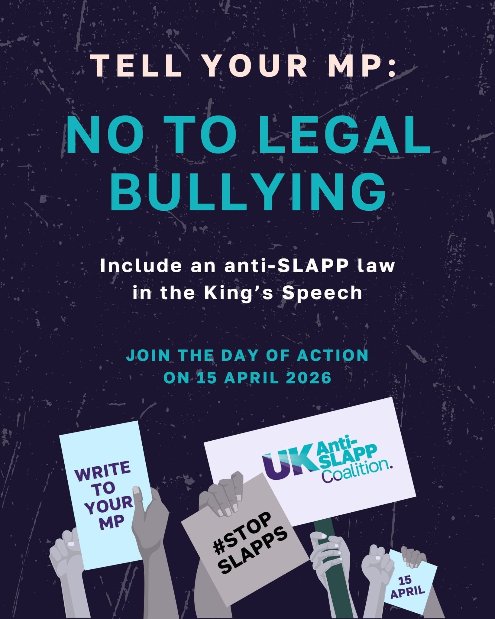 Next month, the government has an opportunity to re-address the balance and ensure that those targeted by legal bullies have the same right to justice as those wealthy enough to afford the costs of litigation. I would be extremely grateful if you could share this article with your local MP, and briefly explain to them why you think anti-SLAPP protections should be included in the King’s Speech (there is a template email here). This issue has been getting more attention in recent months, but there’s a lot of work to do in order to expand the so-far limited anti-SLAPP provisions that were brought in three years ago.